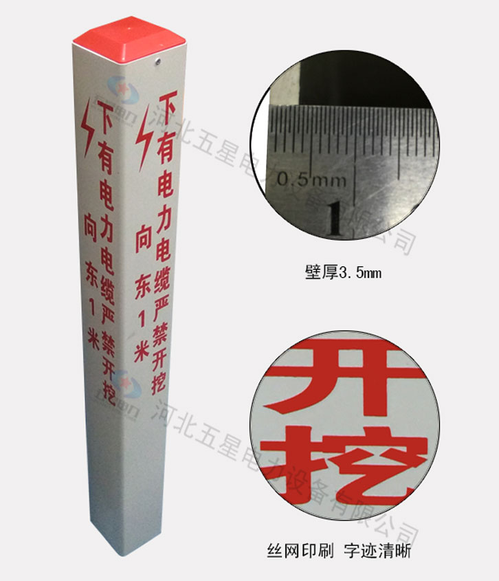 塑鋼標(biāo)志樁采用塑鋼材質(zhì)制成,也稱為pvc標(biāo)志樁,樁體為白色,常規(guī)規(guī)格為100mm*100mm、150mm*150mm。塑鋼標(biāo)志樁材質(zhì)輕便、彈性好、耐酸堿、耐腐蝕、抗老化性能好、安裝運(yùn)輸方便,是警示地下管線的標(biāo)識(shí)產(chǎn)品,能夠清楚的標(biāo)明管線的鋪設(shè)方向,便于大家區(qū)分不同的管線走向。