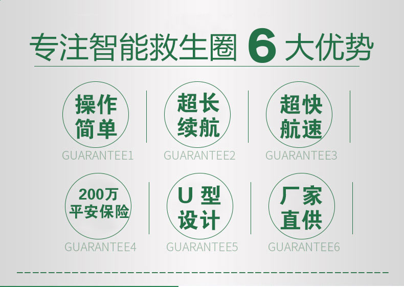 | 正反面識別 | 支持正反面使用,且遙控器自動識別救生圈正反面,不影響遙控器方向鍵的使用。 | ||