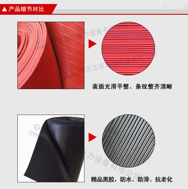 防滑絕緣膠墊產(chǎn)品分為防滑圓點、防滑條紋。 不含雜質:原生橡膠材質,不含次生膠,切面不會有粉末, 柔韌性好:具有優(yōu)良的絕緣性能,彈性強,拉伸強度大 光澤度高:原生橡膠材質,無任何塑料成分,表面光澤度高 無氣泡:五星電力絕緣膠墊,表面無氣泡,無裂痕